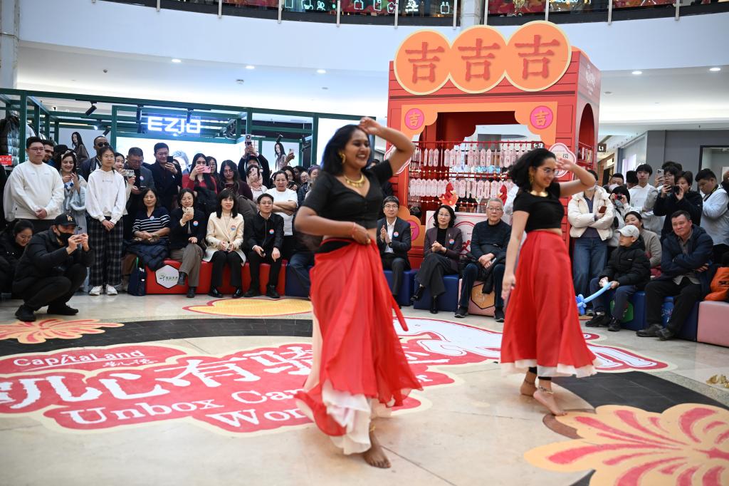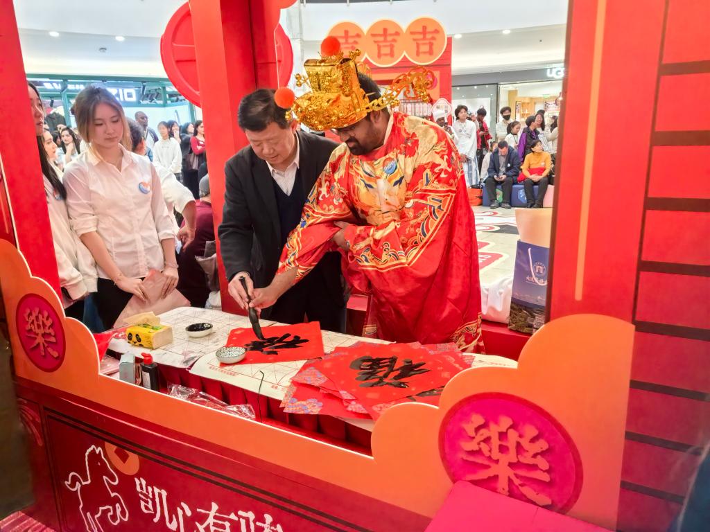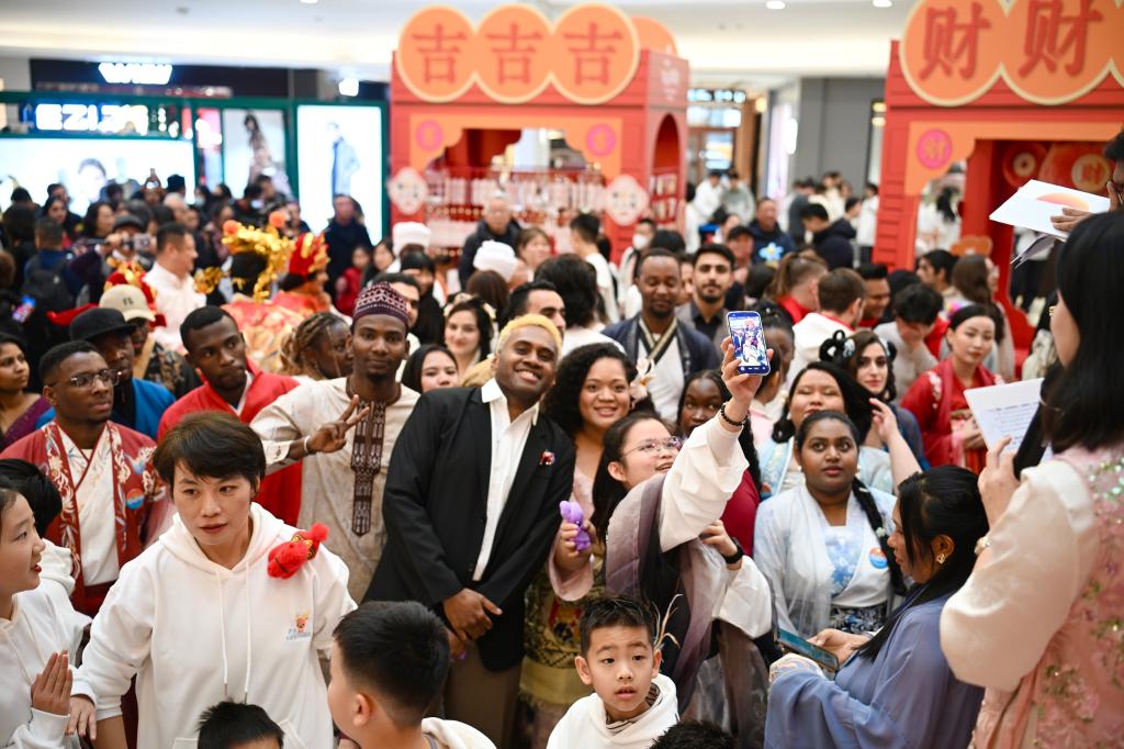留学生精彩献艺,成为全场亮点。汤加留学生以一曲中文歌曲《少年》惊艳登场,歌声真挚热烈,瞬间点燃全场;两名斯里兰卡留学生带来民族特色舞蹈,舞姿欢快、活力四射,将现场气氛推向高潮。演出结束后,同学们手持福字、灯笼等年味道具加入新春巡游,向市民传递节日祝福;在年俗体验区踊跃参与写福字、剪窗花、包饺子等活动,沉浸式感知中国传统文化。