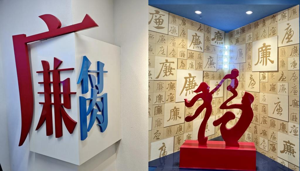 步入“正盛年·奋发有为”展厅,党员教师们以“红船曙光”为起点,重温了党的百年光辉历程,并在讲解员的指引下,了解了不同历史时期的党风廉政建设;同时,通过360行多点互动触控屏和换装体验,学习了各行业坚守岗位、廉洁奉公的典范事迹,筑牢拒腐防变的思想底线。